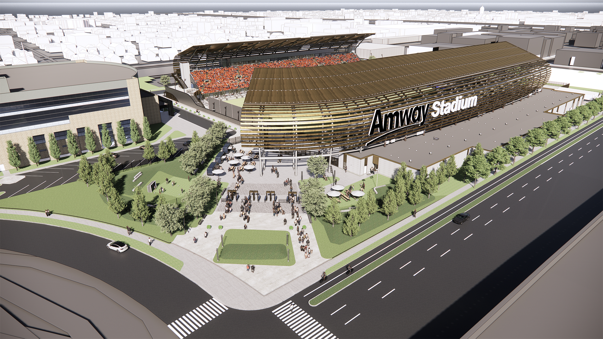 The stadium, which will open in 2027 and be publicly owned and operated by the Grand Rapids-Kent County Convention/Arena Authority (CAA), is being supported in part by a $33 million naming rights agreement with Amway, announced in November.